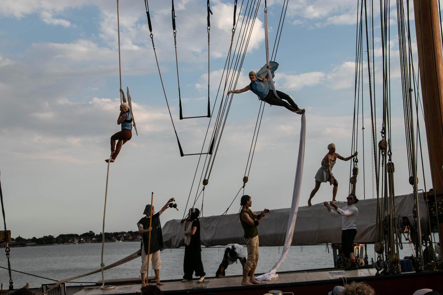 1h site-specific open-air new-circus performance on a touring sailing boat various harbours in Germany / Denmark (Baltic Sea)